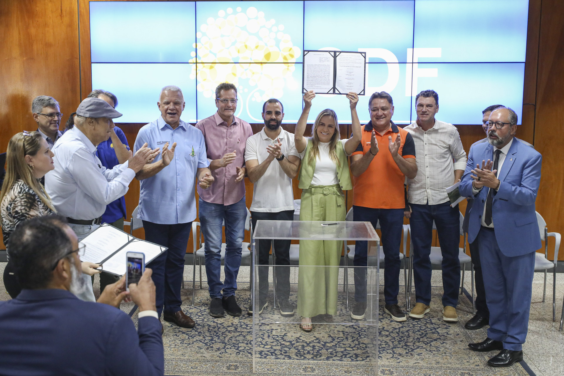 Durante a cerimônia de assinatura do termo de compromisso, a governadora em exercício Celina Leão comemorou: “O governo conseguiu vencer todas as barreiras democráticas, e agora nós estamos finalizando essas regularizações” | Fotos: Renato Alves/Agência Brasília