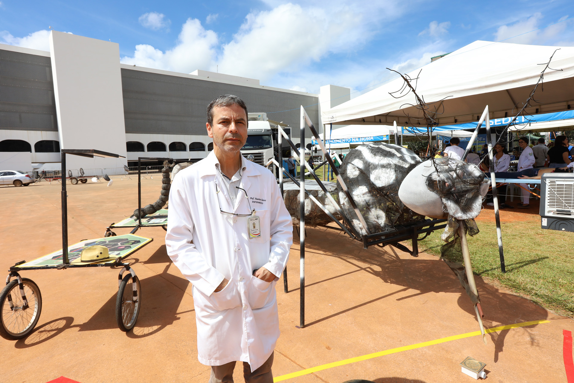 O enfermeiro Maurício Chaves criou a réplica do mosquito Aedes aegypti para ajudar nas ações educativas contra a dengue | Fotos: Sandro Araújo/Agência Saúde-DF