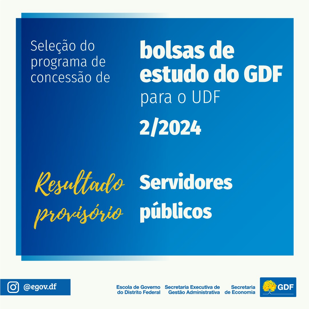Na edição desta sexta-feira (26) do Diário Oficial do Distrito Federal (DODF), a Escola de Governo (Egov), vinculada à Secretaria de Economia do DF (Seec), publicou a classificação dos servidores públicos do Distrito Federal que se inscreveram no concurso de bolsas de estudo para o Centro de Ensino Unificado do DF (UDF).
