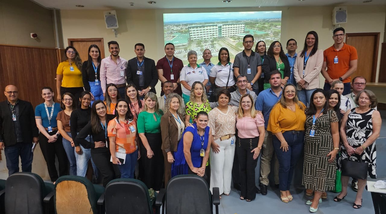 Participantes da reunião da Região Integrada de Desenvolvimento do Distrito Federal e Entorno (Ride) Sul, nesta quinta (22), no Hospital Regional de Santa Maria (HRSM) | Foto: Jurana Lopes/IgesDF