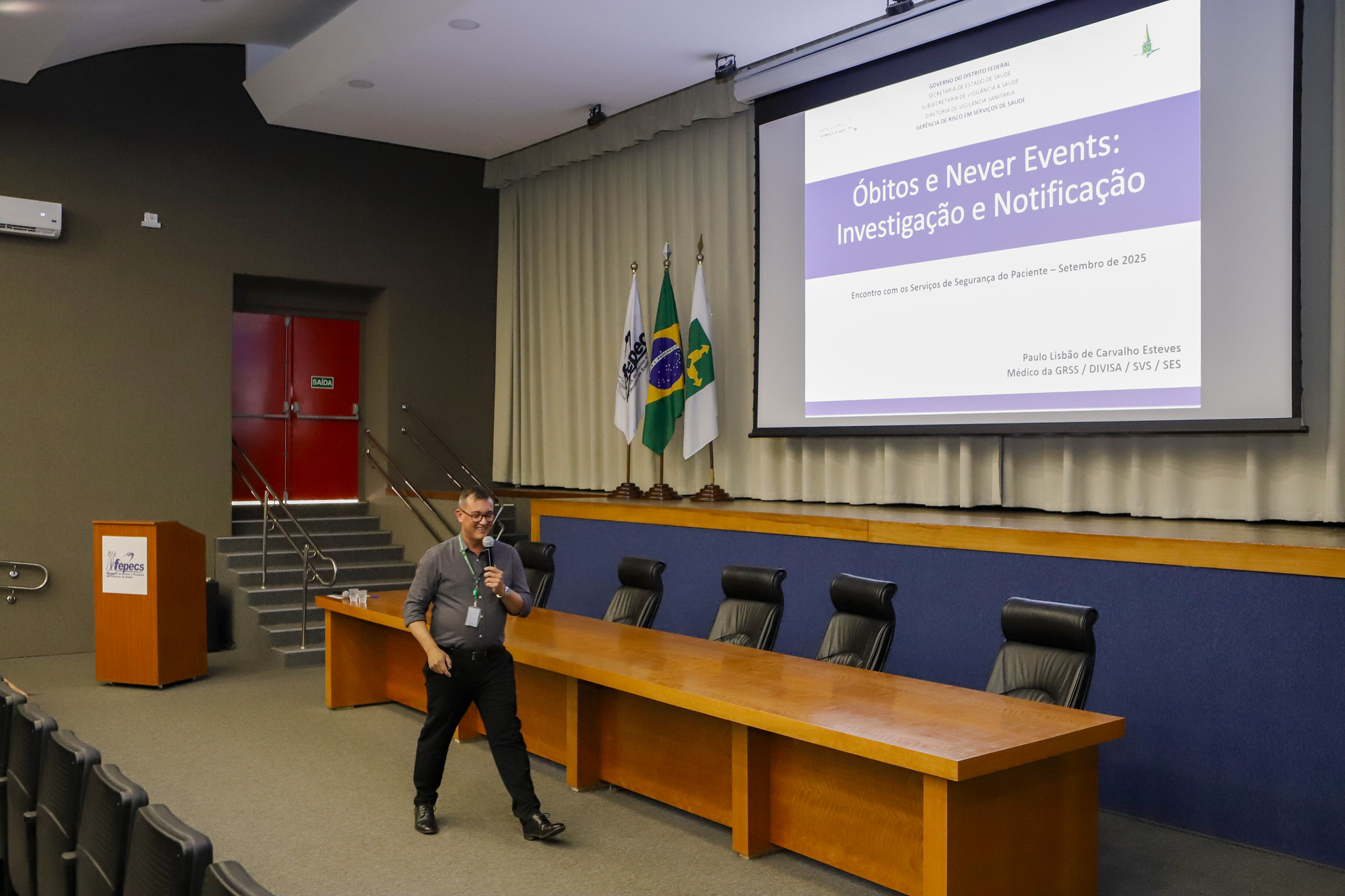A comunicação efetiva e o trabalho em equipe na saúde são determinantes na qualidade da assistência ao paciente. Com esse objetivo e na melhoria contínua do serviço, a Gerência de Risco em Serviços de Saúde da Secretaria de Saúde do Distrito Federal (SES-DF) promoveu, nessa segunda-feira (1º), uma reunião com os Núcleos de Segurança do Paciente das unidades hospitalares da capital. O encontro foi realizado no auditório da Fundação de Ensino e Pesquisa em Ciências da Saúde (Fepecs).