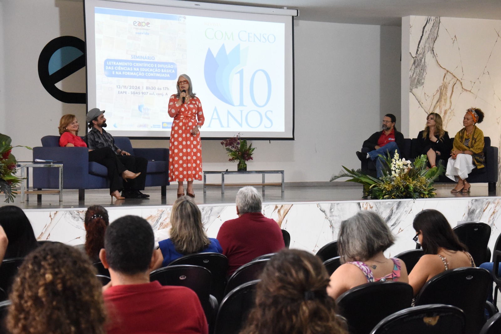 A Secretaria de Educação do Distrito Federal (SEEDF) promoveu nesta quarta-feira (13) o seminário Letramento Científico e Difusão das Ciências na Educação Básica e Formação Continuada. O evento celebrou os 10 anos da Revista Com Censo – Estudos Educacionais do DF (RCC), com palestras sobre o letramento científico e a produção de conhecimento acadêmico. O seminário foi realizado no auditório da Escola de Formação Continuada dos Profissionais da Educação (Eape).