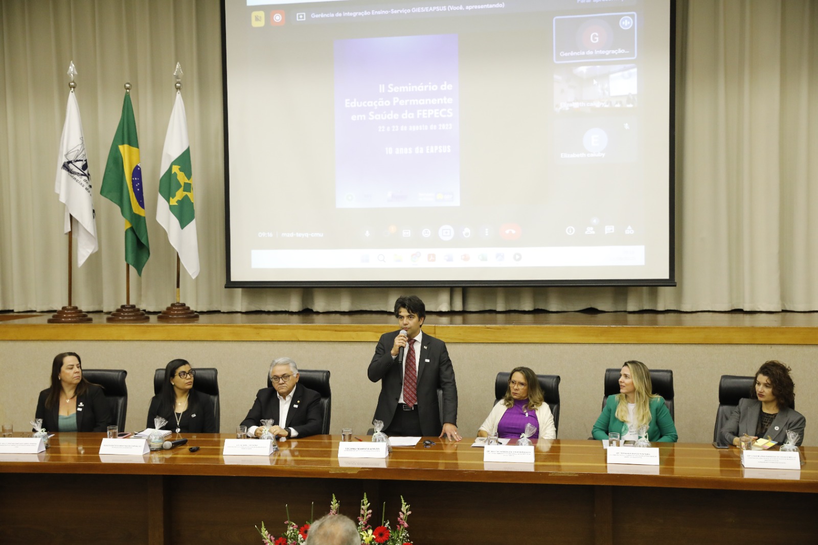 A Escola de Aperfeiçoamento do Sistema Único de Saúde (Eapsus) iniciou, na manhã desta terça-feira (22), o II Seminário de Educação Permanente em Saúde. O evento ocorre até esta quarta-feira (23), com palestras, debates e oficinas de qualificação. A abertura foi realizada no auditório da Fundação de Ensino e Pesquisa em Ciências da Saúde (Fepecs) e contou com a presença de representantes do Ministério da Saúde (MS), Secretaria de Saúde do Distrito Federal (SES-DF) e Conselho Nacional de Secretários de Saúde (Conass), além das gestoras anfitriãs.