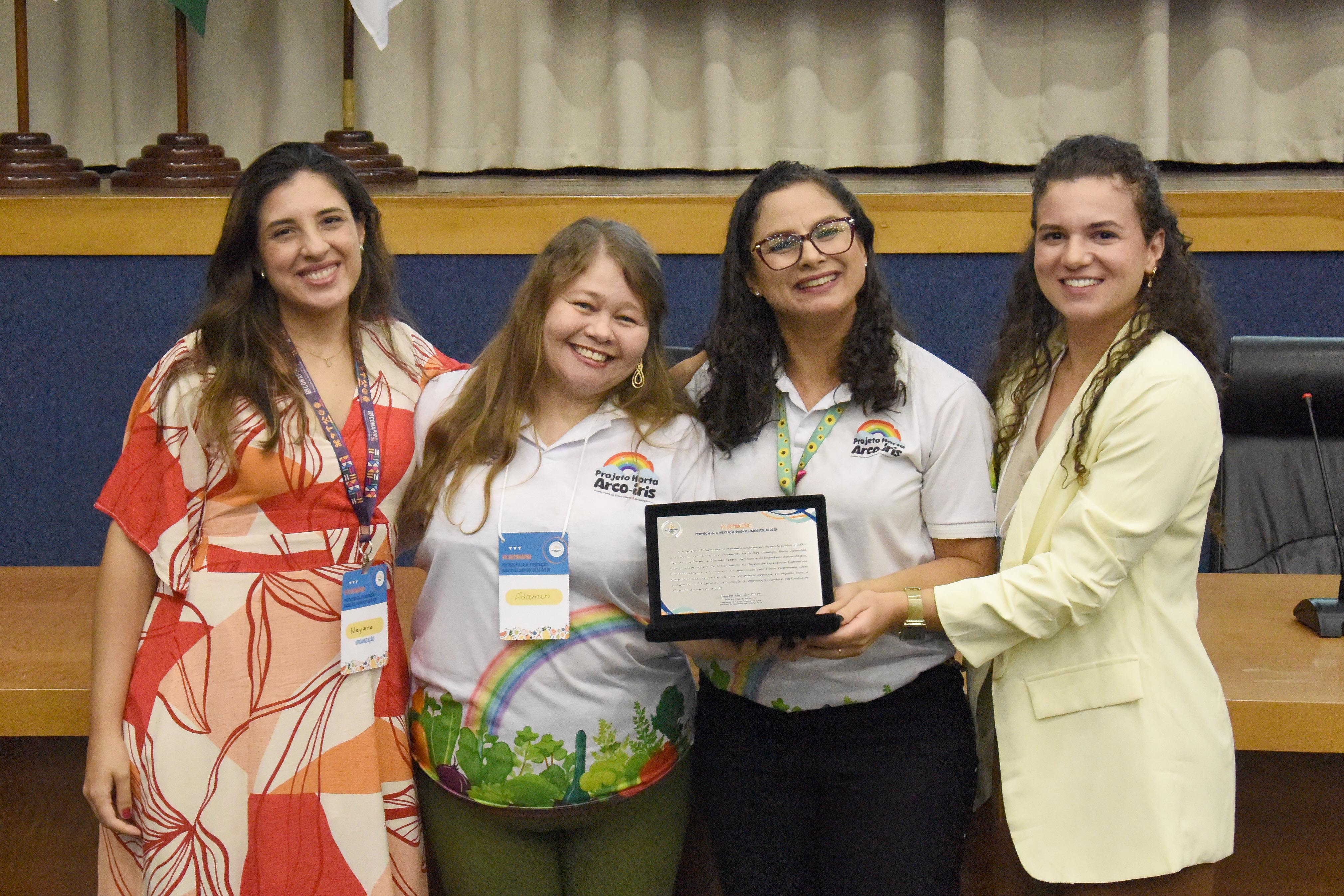O projeto “Horta com Bases Agroflorestais da Escola Classe 12 de Sobradinho: Espaço Arco-Íris” foi um dos premiados na Mostra de Experiências Exitosas em Educação Alimentar e Nutricional, apresentada durante o seminário. A iniciativa, desenvolvida pela professora Íris Soares Lourenço, integra educação ambiental, alimentar e nutricional em um único espaço, transformando a horta escolar em um ambiente de aprendizagem, convivência e sustentabilidade.