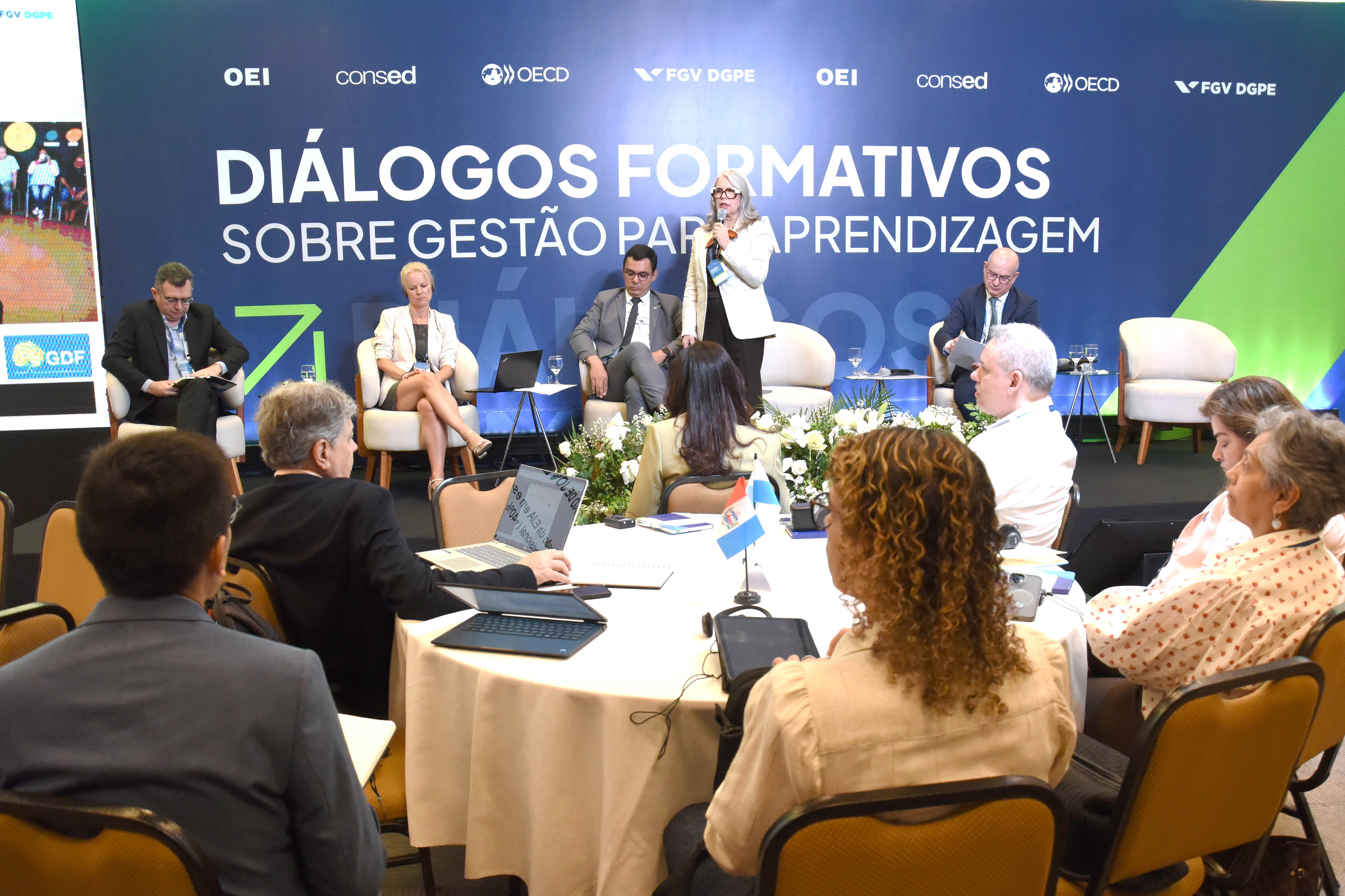 Andreas Schleicher, diretor de Educação da OCDE, apresentou dados e evidências globais sobre gestão educacional, enquanto especialistas de Portugal e da França compartilharam experiências e boas práticas desenvolvidas em seus respectivos países.