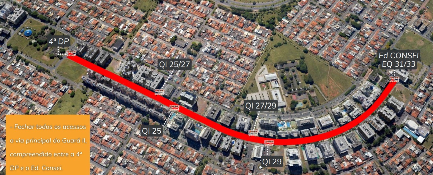 No domingo (7), será realizada a Rua do Lazer do Guará. Devido ao evento, das 6h às 17h, todos os acessos à Avenida Central do Guará II, entre a 4ª Delegacia de Polícia e o Edifício Consei, na EQ 31/33, ficarão fechados. Além de realizar as interdições na via, as equipes de fiscalização do Detran-DF farão o controle do tráfego nas imediações do evento.