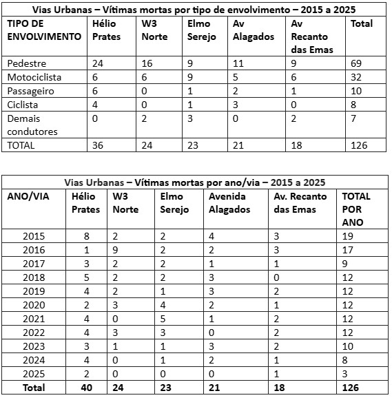 Entre as cinco vias urbanas com mais registros de mortes na década de 2015 a 2024, as avenidas Hélio Prates e Recanto das Emas foram as únicas que registraram mortes em 2025, e as equipes de educação já estão em campo reforçando os cuidados, principalmente em relação à travessia de pedestres, Lei Seca e velocidade, que têm sido fatores muito presentes nas ocorrências fatais.