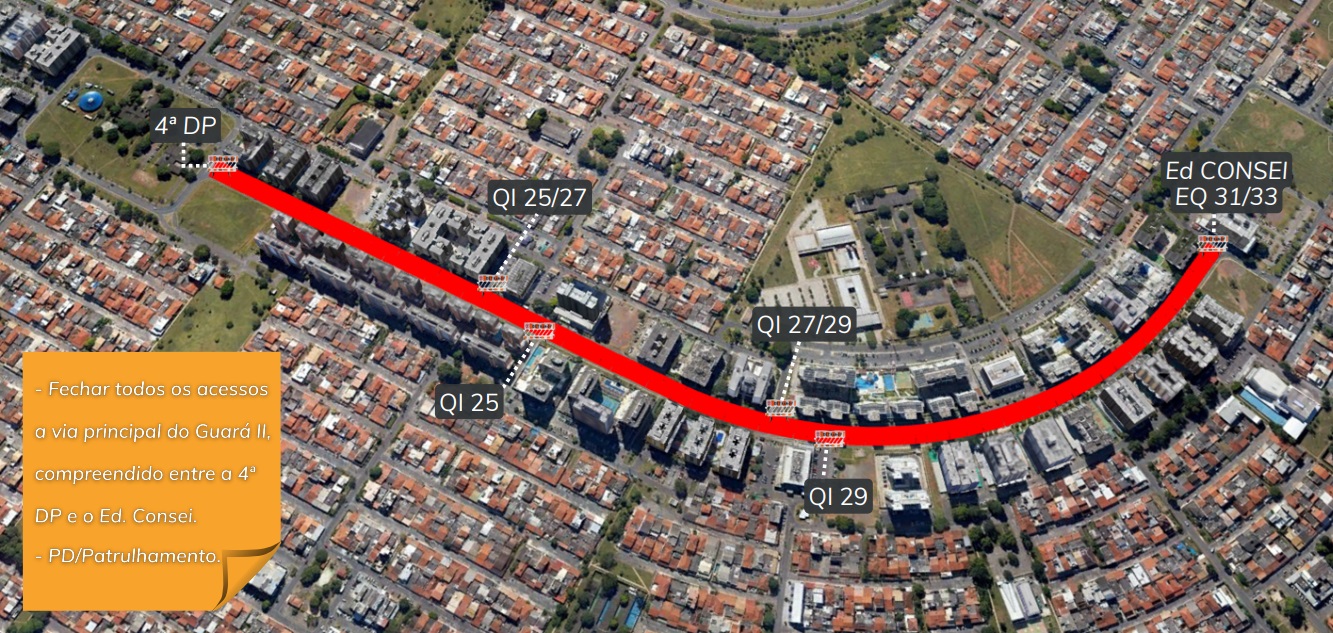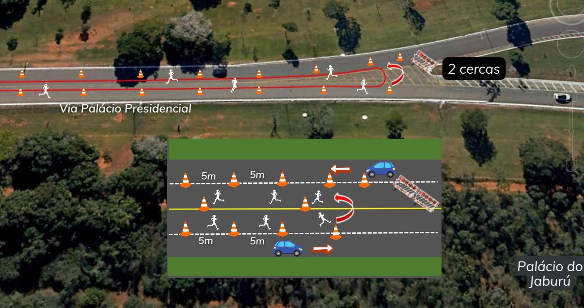 A partir das 6h30, os agentes do Detran-DF farão a interdição de uma faixa da via localizada em frente à Paróquia, no trecho entre a BR-020 e a Escola Classe nº 16. A via será compartilhada entre corredores e veículos.