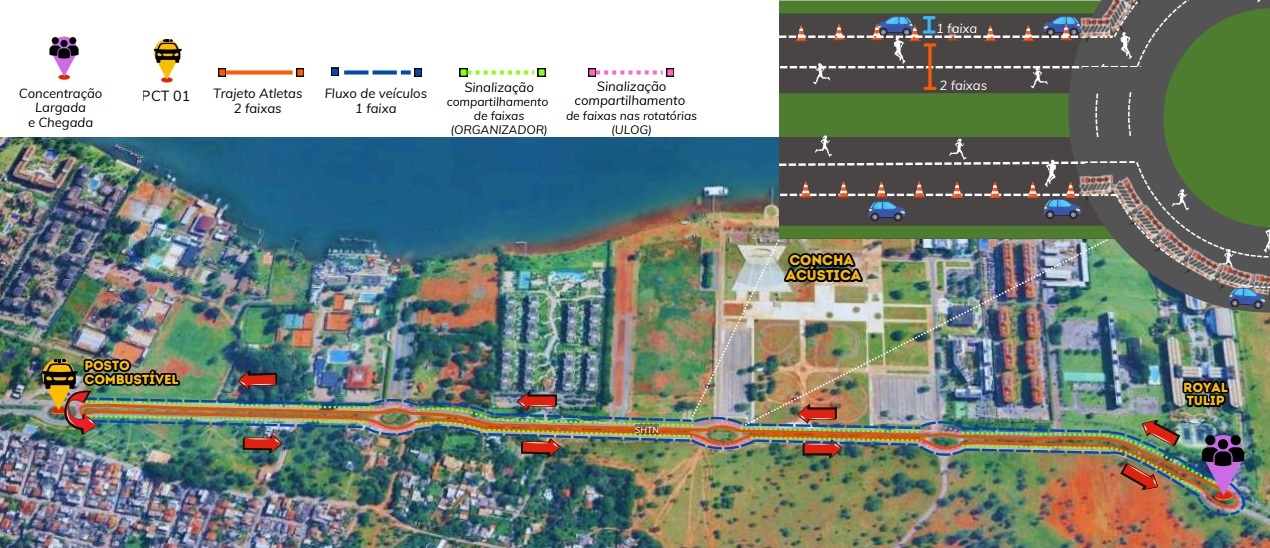 No domingo (28), a partir das 6h, em razão do evento Royal Run Experience, o Detran-DF fará intervenções no trânsito do Setor de Hotéis e Turismo Norte (SHTN). A largada e a chegada dos participantes ocorrerão no Royal Tulip Brasília.