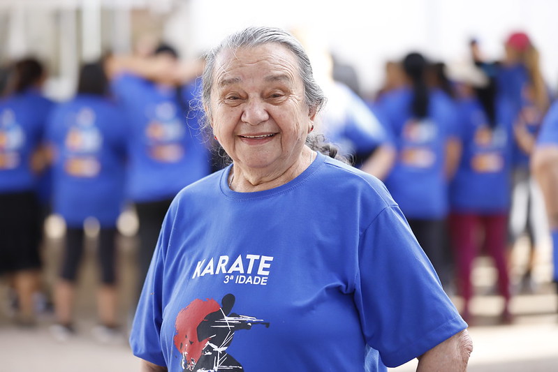 Severina Maria do Carmo representa a alegria dos idosos da UBS 11, que encontraram no karatê e na convivência novas formas de cuidar da saúde
