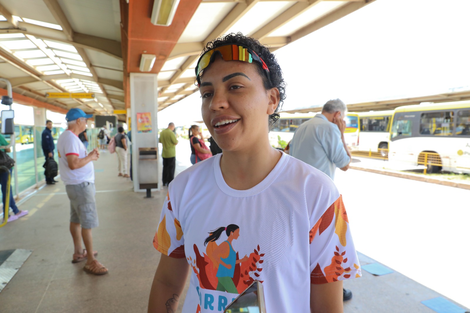 Leydiane Jesus Tavares, 29, deixou cedo o terminal de BRT em Santa Maria, que está em processo de ampliação pela Secretaria de Transporte e Mobilidade (Semob-DF), para uma corrida de rua na Esplanada dos Ministérios.