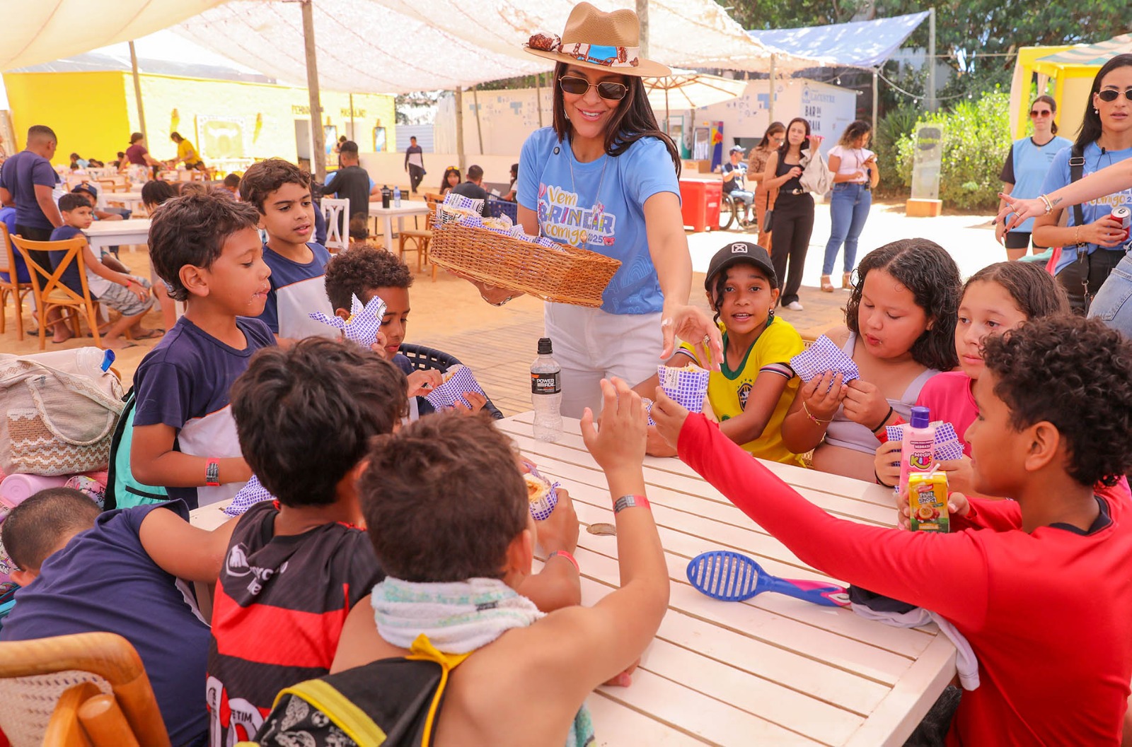 Um dia de alegria em meio à rotina difícil. Nesta terça-feira (26), a Campanha Vem Brincar Comigo levou ao complexo do Festival Na Praia crianças de 5 a 12 anos em situação de vulnerabilidade de várias regiões do Distrito Federal. Idealizada pela primeira-dama Mayara Noronha Rocha e coordenada pela Chefia-Executiva de Políticas Sociais, a campanha integra o calendário oficial do Governo do Distrito Federal (GDF).