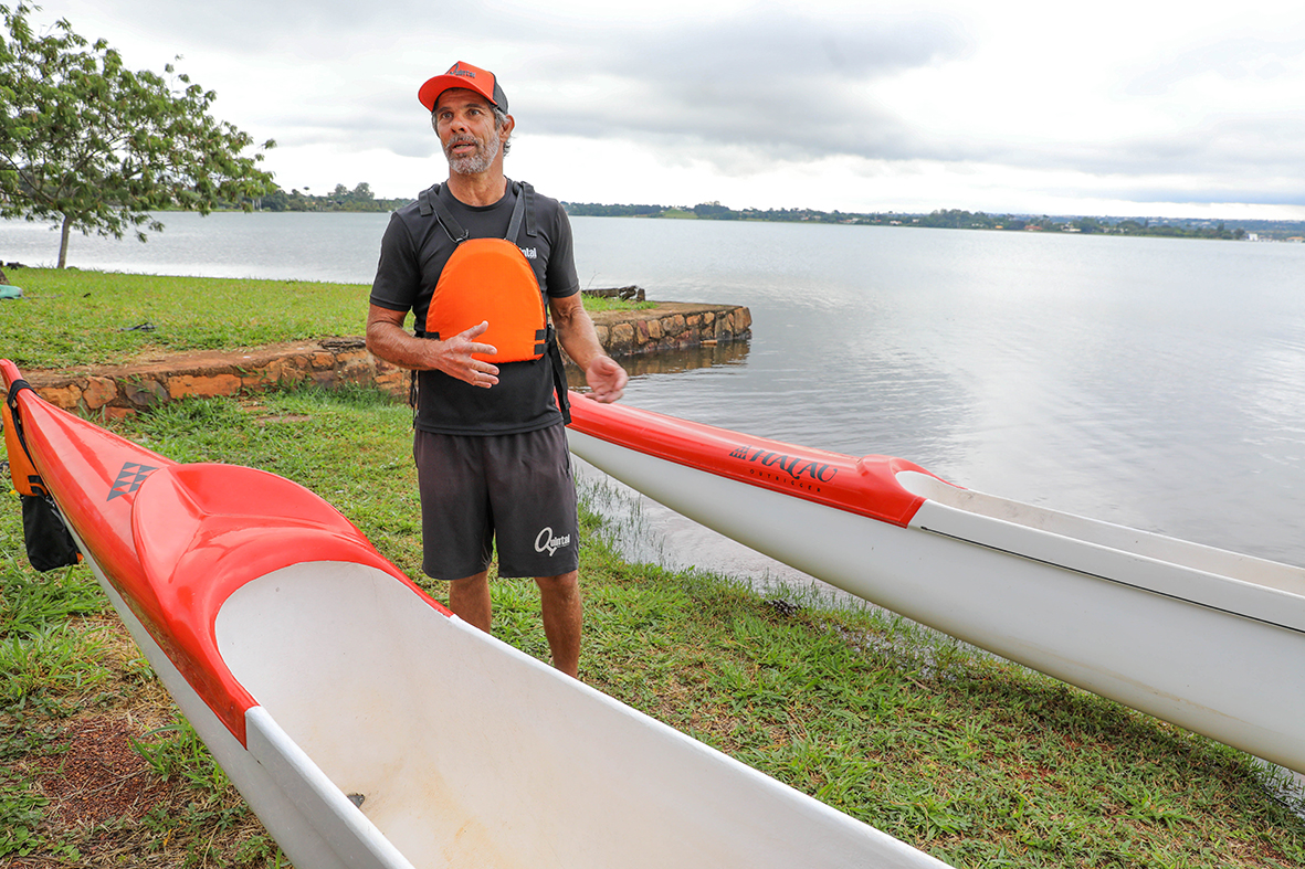 “Brasília tem uma geografia que propicia muitas opções de lazer e esporte. As pessoas que imaginam ter que sair de Brasília para ter esse tipo de atividade e interação com a natureza estão enganadas”, defende o professor de educação física Lico Gall, 50 anos, que também é atleta de canoagem havaiana.