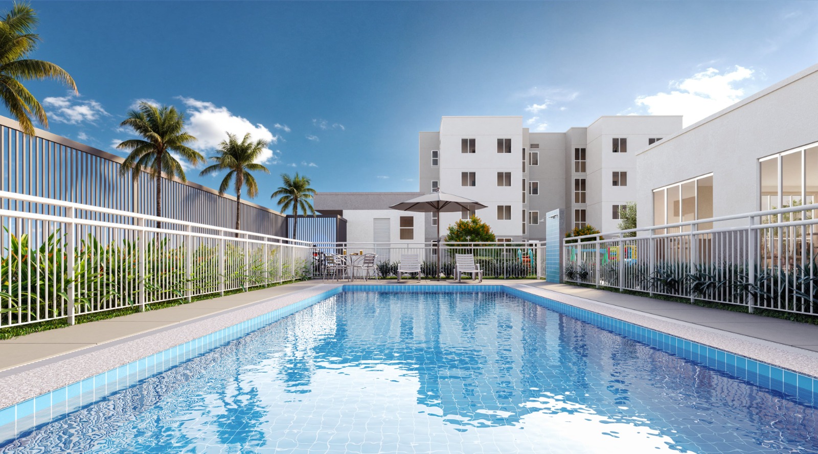 → 176 unidades habitacionais: 170 apartamentos de dois quartos e seis unidades adaptadas para pessoas com deficiência (PcDs), com um quarto → Área privativa de 45,06 m² por unidade → Guarita de segurança para maior tranquilidade dos moradores → Piscina e playground → Estacionamento com 90 vagas para veículos, três para motos e 180 para bicicletas.