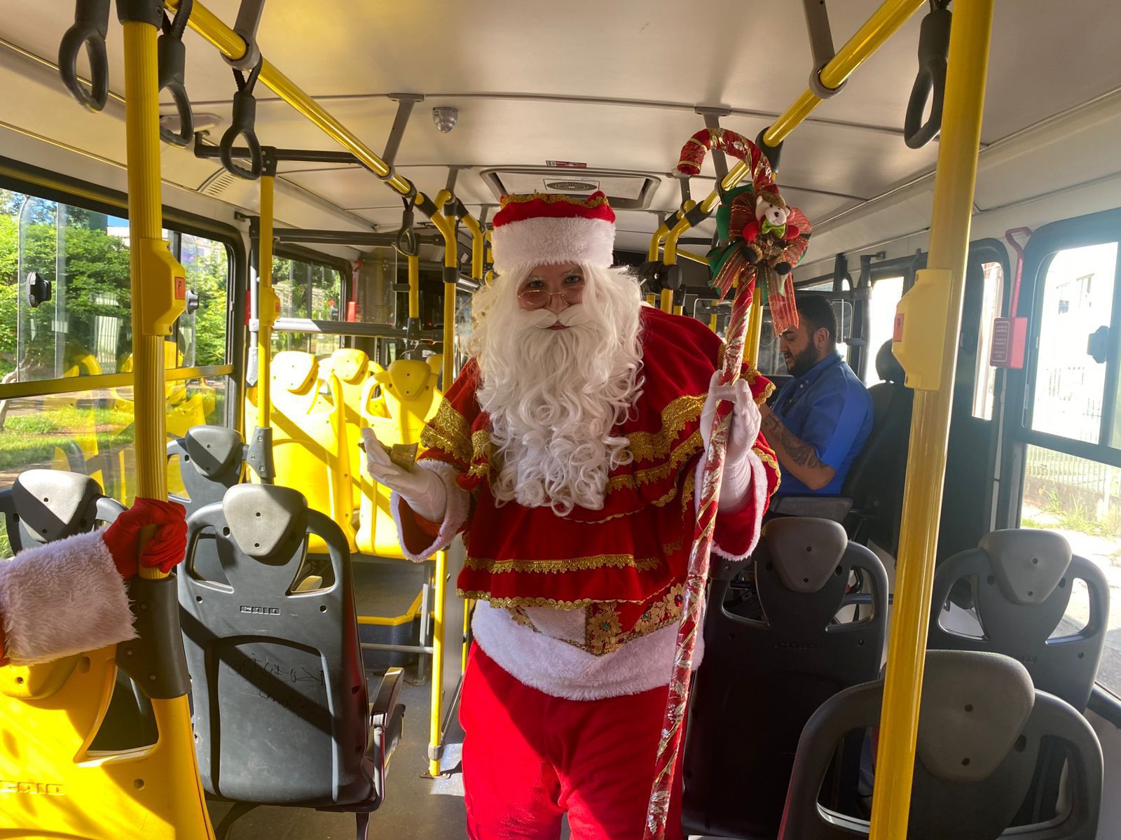 Os usuários do transporte público foram surpreendidos com uma ação natalina especial promovida pela concessionária Urbi, que começou nas primeiras horas do dia e segue até a noite. Nesta quinta-feira (20), Papai Noel, duendes e outros personagens temáticos passaram por diferentes linhas de ônibus, distribuindo panetones e espalhando o espírito do natal nos ônibus, rodoviárias e estações.