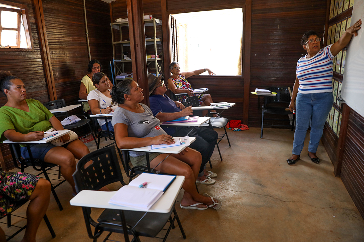 A dona de casa Adriana Salvador (de cinza) não perdeu a oportunidade de aprender a ler e escrever: “É uma chance que o GDF está dando para nós, estou muito feliz mesmo” | Fotos: Joel Rodrigues/Agência Brasília
