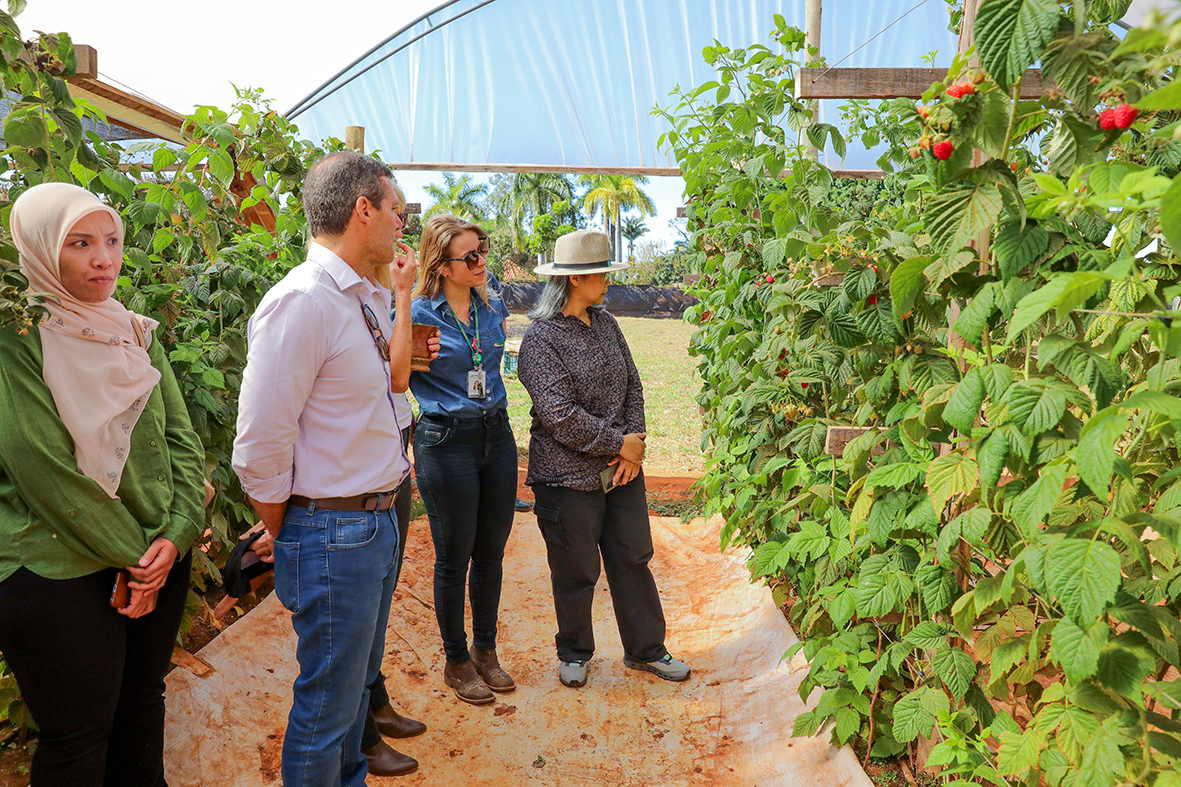 “Nós todos somos seres humanos e podemos ajudar uns aos outros a ter uma vida melhor”, afirmou a embaixadora da Malásia no Brasil, Gloria Corina Anak Peter Tiwet, durante visita à propriedade rural Flor do Cerrado, no Lago Oeste. “Vim não apenas como embaixadora, meu interesse é também pessoal. Queria saber como funciona o trabalho da Emater com os produtores, como os produtores produzem as frutas vermelhas aqui, como a Emater ajuda no aumento de renda do produtor. Quis ver como é o dia a dia do produtor, todo o plantio e a colheita.”