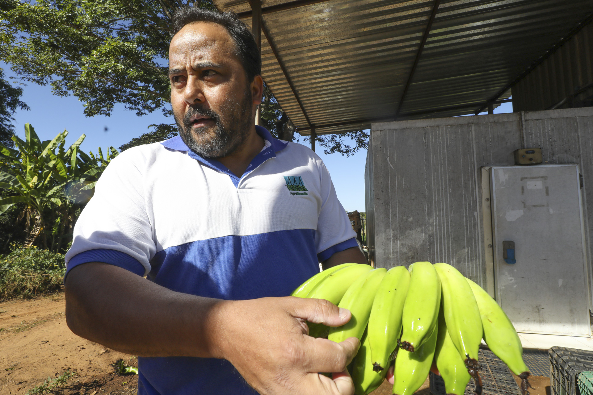 O apoio da Emater-DF foi essencial para o desenvolvimento da propriedade rural do produtor Wellington Rodrigues, 46 anos. Nascido em Minas Gerais, ele chegou a Sobradinho em 1994 junto à mãe e aos oito irmãos. Em 2005, conseguiu adquirir uma área na Fercal e iniciou os plantios. Nos primeiros anos, dedicou-se inteiramente à mandioca, mas, a partir de 2016, abriu espaço para uma nova cultura: a banana.
