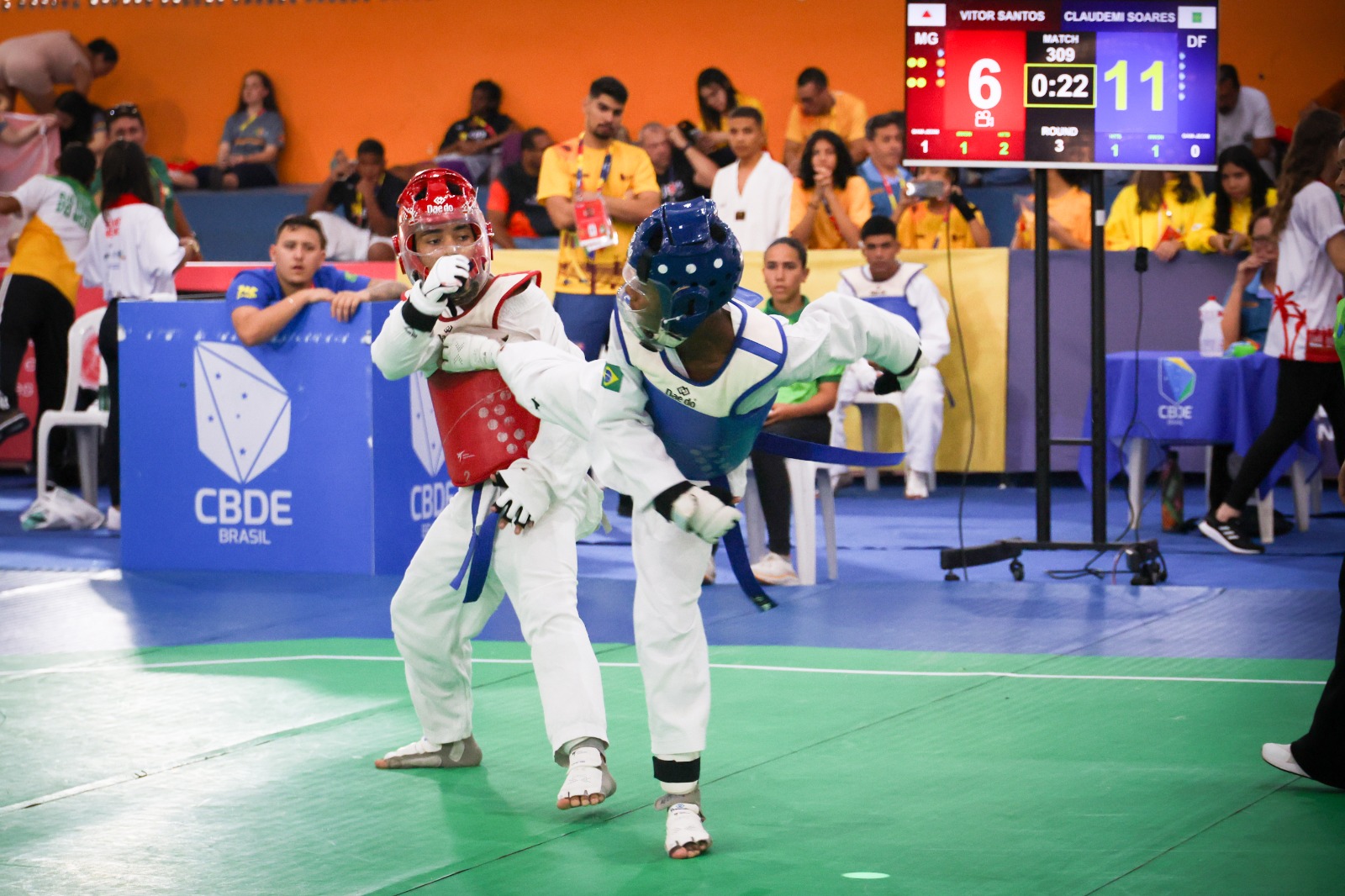 A equipe do Distrito Federal viveu um verdadeiro dia de luta nessa quinta-feira (26) nos Jogos Escolares Brasileiros (JEBs) 2024, realizados em Recife (PE). Nas disputas do taekwondo e do karatê, o time brasiliense conquistou medalhas, inclusive uma de ouro, garantida pelo estudante do Colégio Cívico-Militar Centro Educacional (CED) 01 do Itapoã Claudemir Soares de Oliveira, de 14 anos. O atleta de taekwondo venceu o adversário de Pernambuco na série prata dos JEBs.