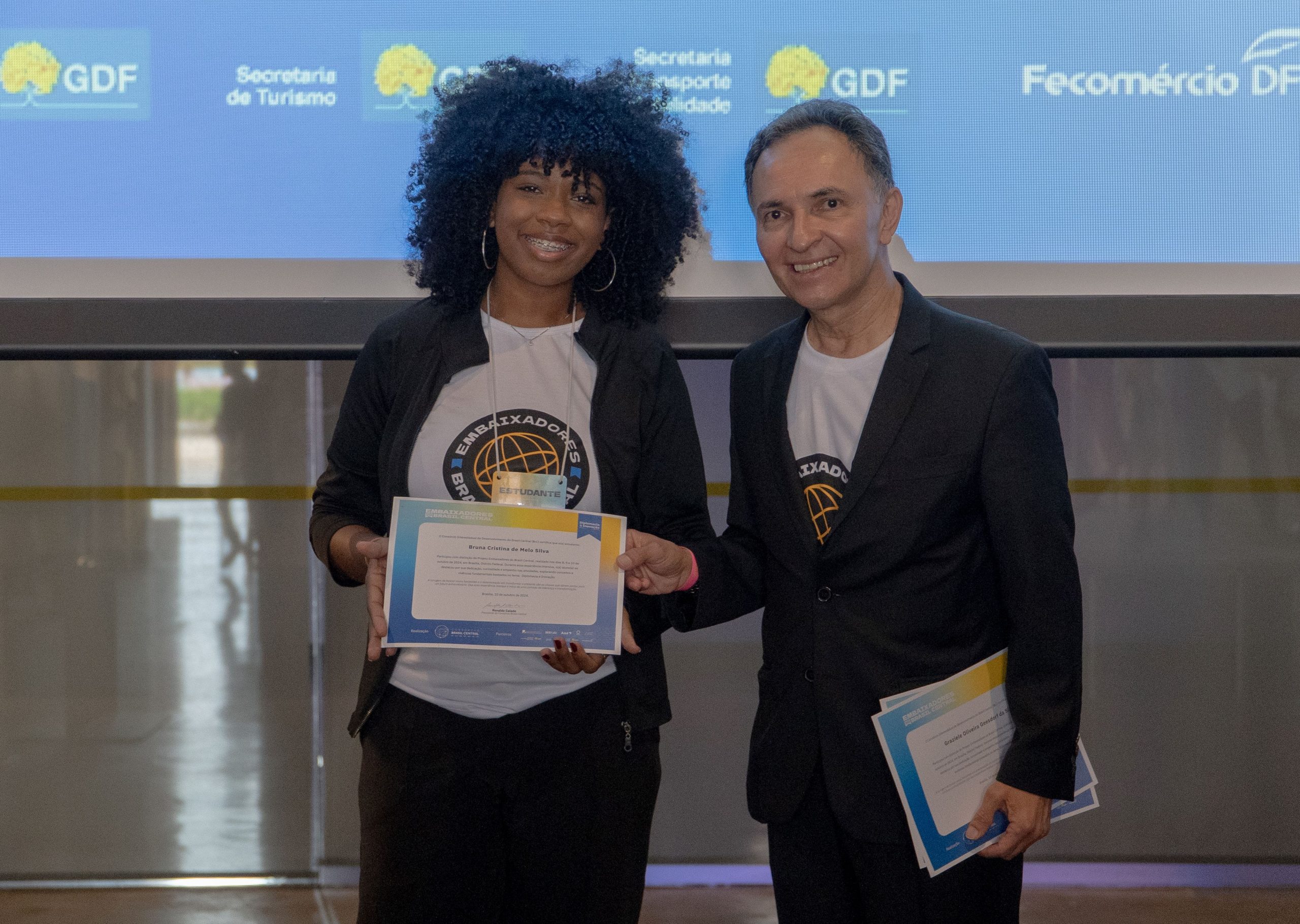 Após viver uma experiência focada nas relações internacionais, por meio de uma imersão nas embaixadas de diferentes países e um passeio pela capital federal, 21 estudantes participaram, nesta quinta-feira (10), do encerramento do projeto “Embaixadores do Brasil Central”, que começou na última terça-feira (8). A cerimônia de encerramento aconteceu no Sesi Lab.