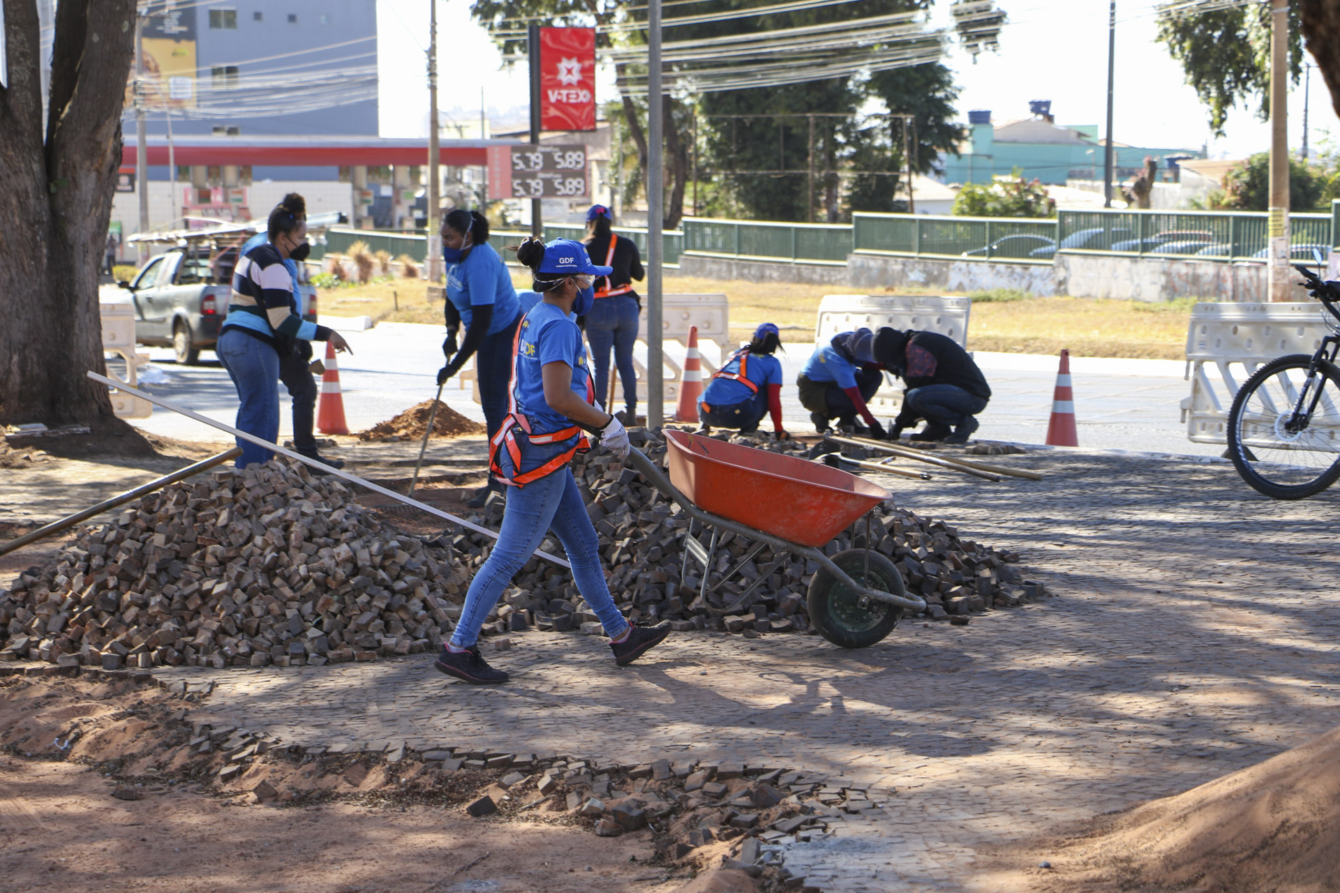 Importante avenida comercial que liga Ceilândia a Taguatinga, a Hélio Prates está passando por uma transformação com obras de infraestrutura para requalificar toda a região. Enquanto tratores e equipamentos são utilizados nos serviços mais pesados de drenagem e pavimentação, na segunda etapa da obra, alunos do RenovaDF fazem um trabalho meticuloso, recuperando o tradicional calçamento com pedras portuguesas.