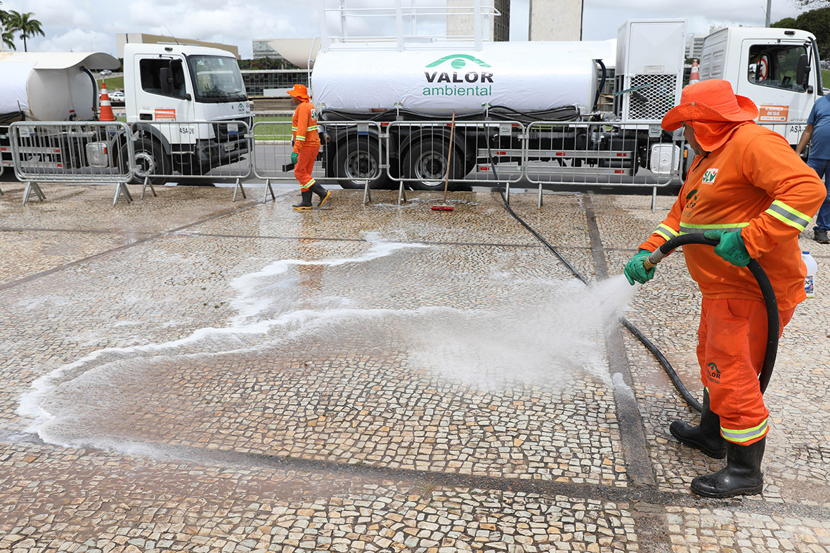 O trabalho de manutenção das pedras portuguesas na Praça dos Três Poderes foi concluído e, nesta segunda-feira (13), começa a etapa de limpeza do piso. Após a Companhia Urbanizadora da Nova Capital do Brasil (Novacap) ter finalizado os encaixes e substituição das pedras, o Serviço de Limpeza Urbana (SLU) aplicará um produto específico para a limpeza do material que compõe o piso icônico da praça.