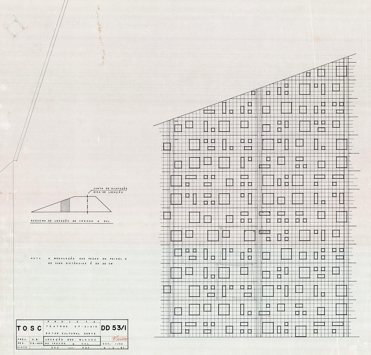Planta original do emblemático painel de Athos Bulcão O Sol Faz a Festa, localizado na fachada do Teatro Nacional | Imagem: Arquivo Público do DF