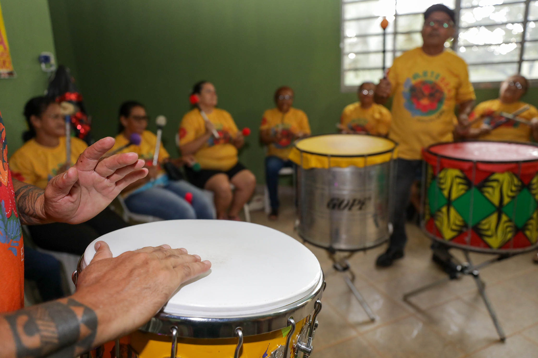 Com batucada, risadas e muita energia, o Arte Brasil deu início à terceira edição das oficinas gratuitas, com percussão terapêutica, artesanato com materiais recicláveis e crochê. Voltado para mulheres do Itapoã, o projeto proporcionará, ao longo de seis meses, um espaço de aprendizado, expressão e convivência. As 25 participantes terão a oportunidade de desenvolver novas habilidades e fortalecer laços dentro da comunidade. Os encontros acontecem todas as quintas-feiras, das 14 às 17h, na Casa de Cultura Kanzuá do Batukenjé.