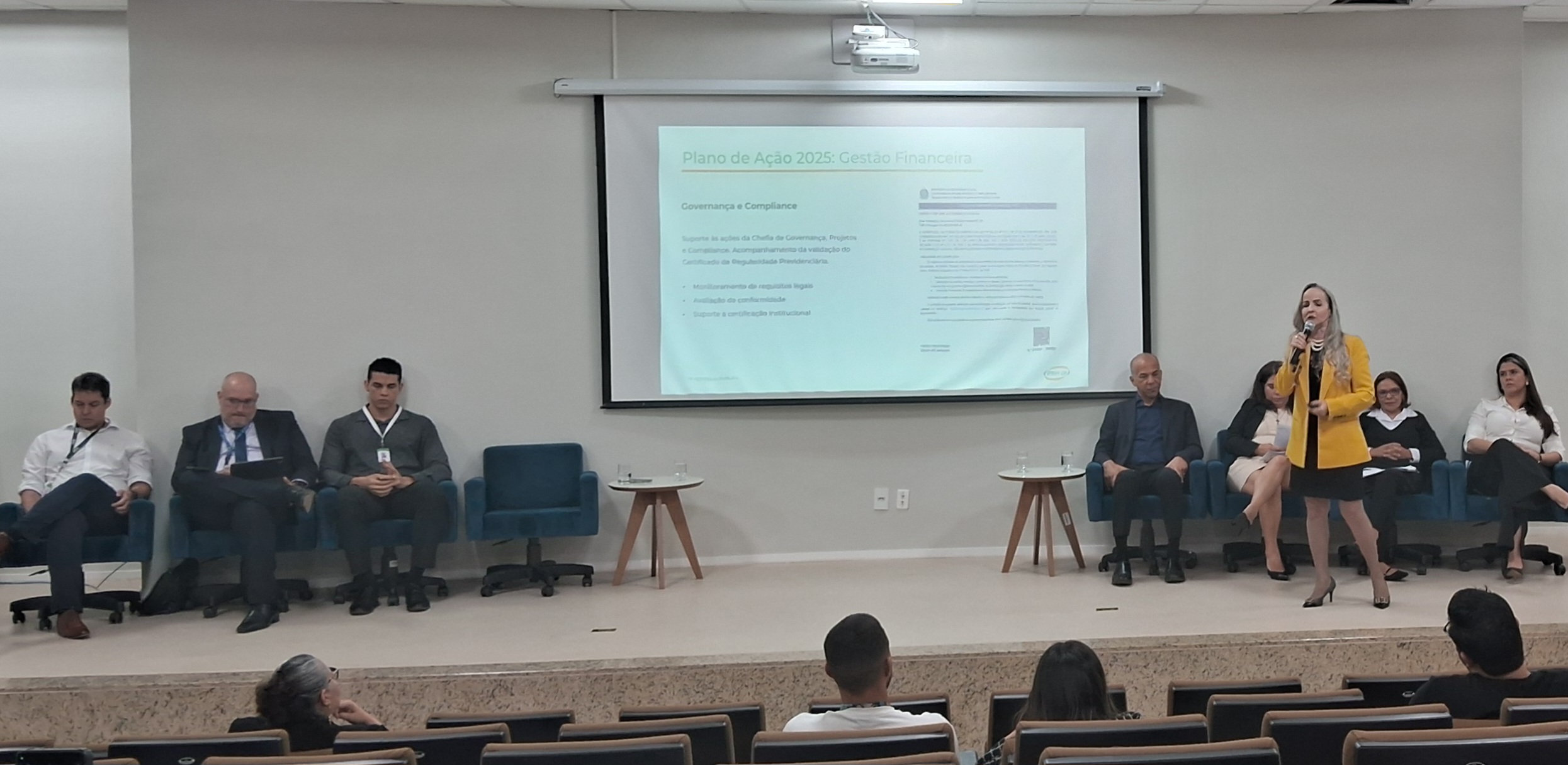 O diretor Jurídico, Luiz Gustavo Barreira Muglia, apresentou as ações da Controladoria, informando que os servidores atuam em quatro área principais: Controladoria, Gerência de Controle de Riscos, Divisão de Auditoria e Correição e Ouvidoria. Destacou que as ações de acompanhamento garantem “a conformidade e eficiência na gestão dos recursos previdenciários e nas operações administrativas do Instituto”.