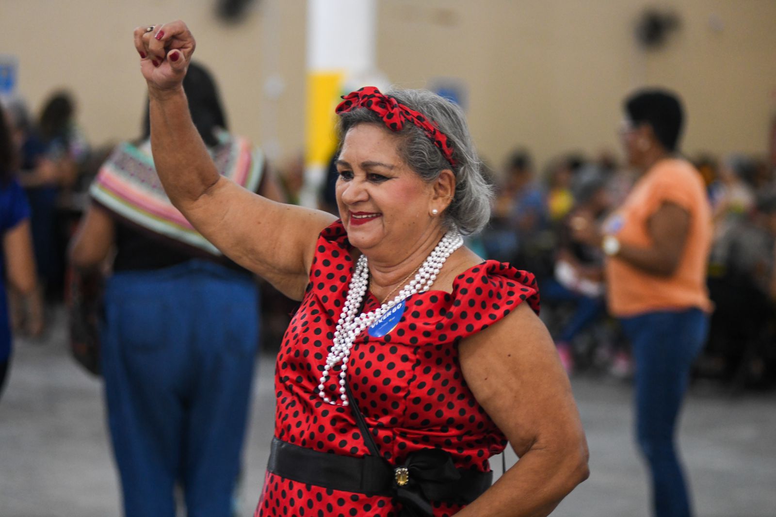 Dona Diná de Souza, 73 anos, passou o último mês contando os dias para arrastar o pé no Baile Viver 60 +. Separou sua melhor roupa, os colares, caprichou na maquiagem e foi para o evento mais importante dos últimos tempos segundo ela. “Eu vim para arrasar. Me arrumei mesmo, mas essa beleza aqui reflete a felicidade que estou sentindo. Eu amo dançar e este baile é maravilhoso. Eu era muito presa dentro de casa, vivia nervosa. Minha vida realmente mudou desde que eu entrei no Projeto Viver 60 +. O pessoal é muito amoroso e todas as ações que eu participei, até agora, me fizeram sentir mais viva”, disse.