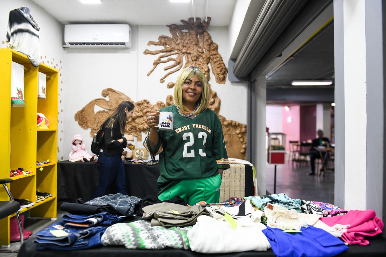 O espaço é dedicado à exposição das participantes do projeto Banco de Talentos, promovido pela Sejus. Ele tem o objetivo de apoiar o empreendedorismo e fortalecimento econômico de mulheres em situação de vulnerabilidade social e violência por meio da Feira de Talentos, da oferta de mentoria e da organização de oficinas e cursos de qualificação profissional visando à geração de renda.