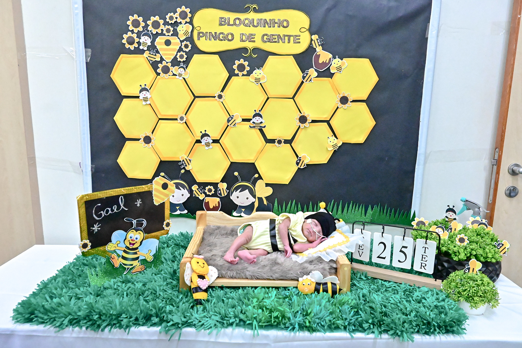 Olhinhos entreabertos, boquinhas com sorrisos discretos e alguns enfeites brilhosos de abelhinhas e zangões marcaram o ensaio fotográfico com tema de Carnaval realizado nesta terça-feira (25) com os bebês internados na Unidade de Terapia Intensiva Neonatal (Utin) do Hospital Regional de Santa Maria (HRSM).