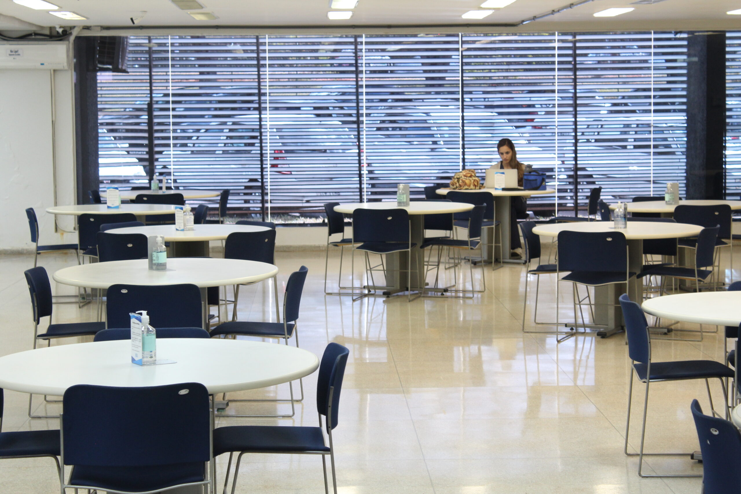 Hoje, a biblioteca concentra as mesas de estudo em grupo no andar térreo. Já as mesas individuais e salas de estudo coletivas ficam na parte superior. Todo o local é climatizado e também há vista para a parte externa, com jardins.