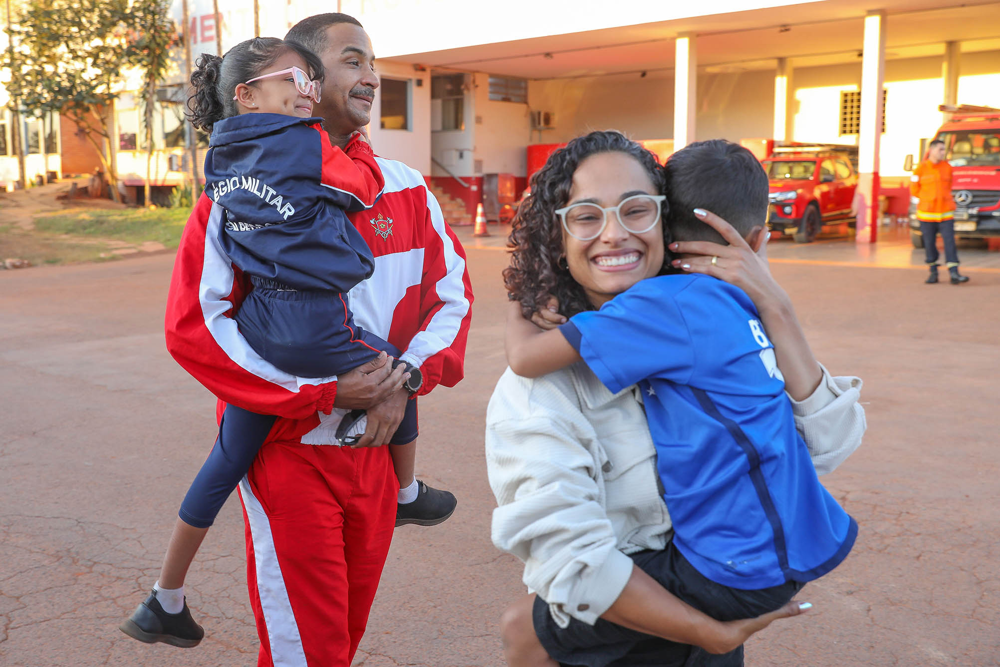 No desembarque no Grupamento de Proteção Ambiental, na Asa Norte, alguns militares foram recepcionados pelas famílias. O sargento Luan Santiago, por exemplo, recebeu o abraço apertado dos filhos Elisa, 8 anos, e Bento, 6. A esposa dele, Ingrid Luz, falou sobre a distância: “Foi difícil porque tinha que conduzir a saudade das crianças, a minha também, mas eu sempre procurei mostrar para eles o quão bonito é o trabalho do pai deles, o quanto ele estava fazendo bonito, ajudando a natureza, ajudando os animais. Então, apesar da saudade, tem muita admiração e muito orgulho”.