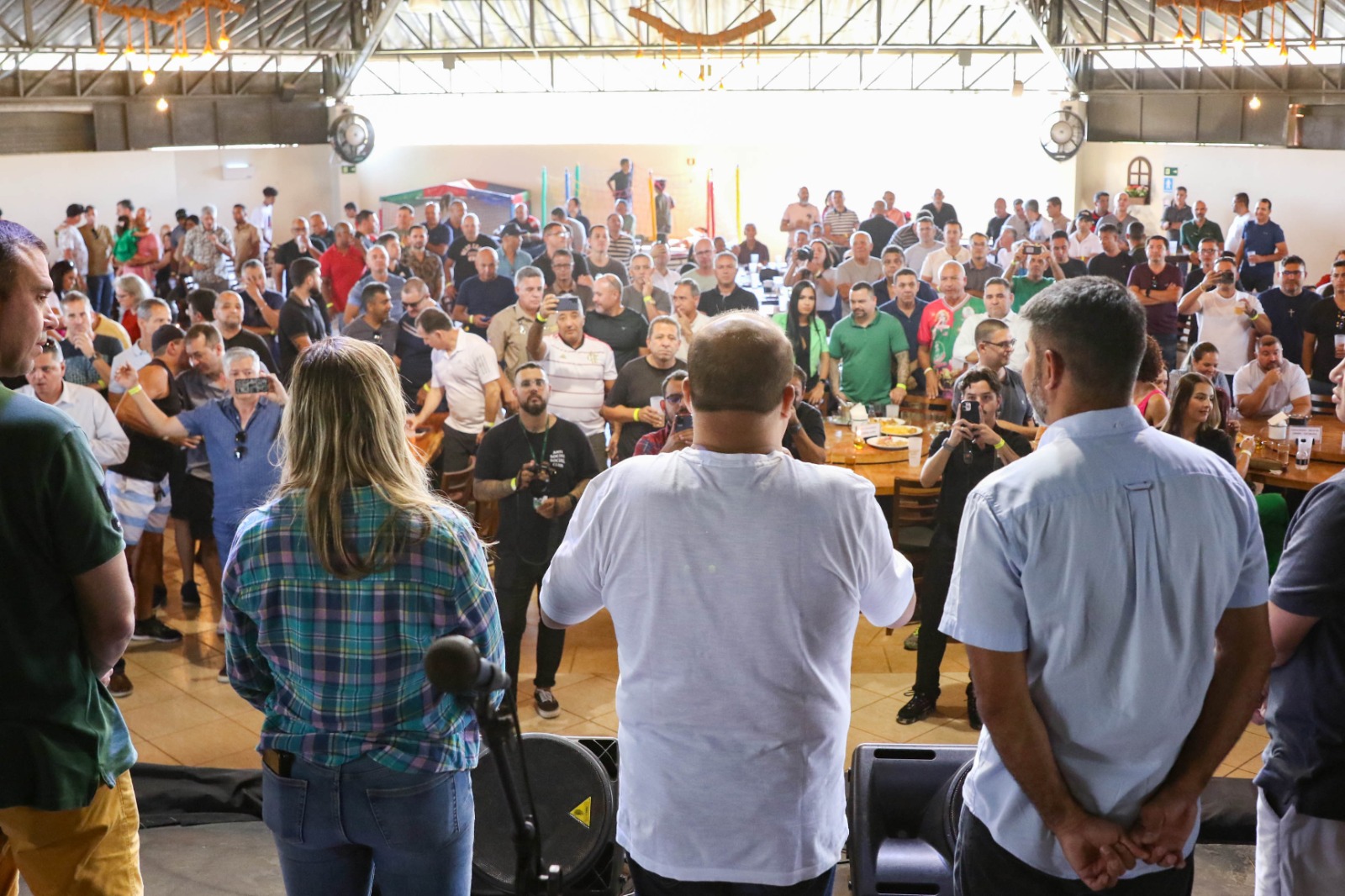 Centenas de militares do Corpo de Bombeiros reuniram-se em um almoço neste sábado (11) para agradecer o Governo do Distrito Federal (GDF) pela recente promoção de 485 praças e 411 oficiais, entre outras medidas. O governador Ibaneis Rocha e a vice-governadora Celina Leão estiveram no evento, realizado na Villa Boechat, na Granja do Torto.