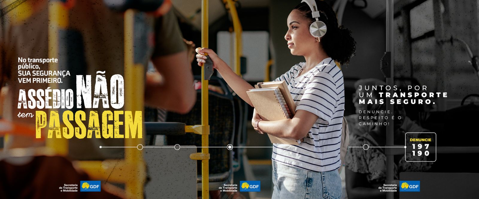 “Assédio não tem passagem” é o tema da nova campanha de combate ao crime de importunação sexual no transporte público coletivo do Distrito Federal. A partir desta quarta-feira (23), a Secretaria de Transporte e Mobilidade (Semob-DF) divulga as peças da campanha nas redes sociais da pasta, no sistema de comunicação visual da Rodoviária do Plano Piloto e no sistema de TV dos ônibus.