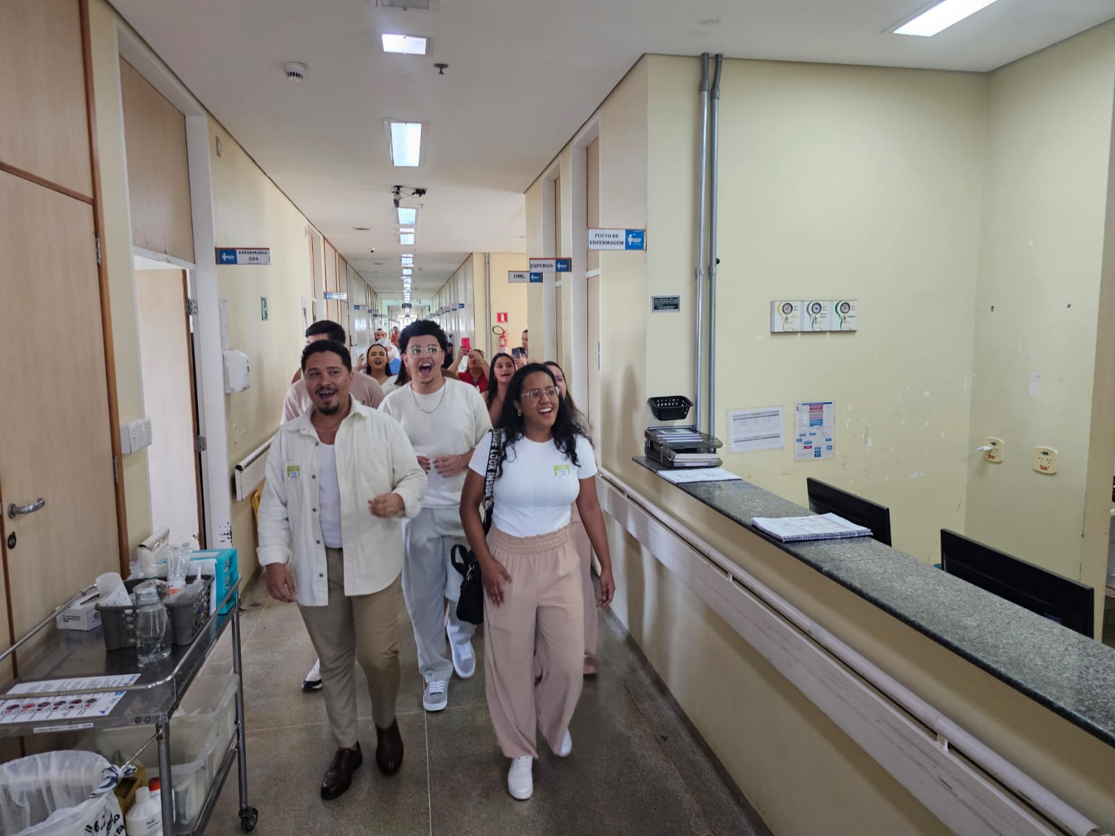 Além de se apresentar no hall de internação, o coral passou cantando pelos corredores do HRSM para contemplar todos os pacientes | Foto: Divulgação/ IgesDF