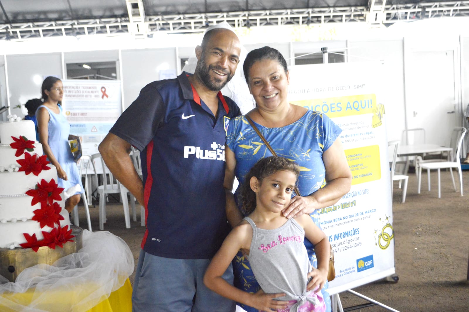 Josué Andrade e Marisvânia Desidério, ao lado da filha Alice, comemoram o casamento com tudo a que têm direito | Foto: Divulgação/Sejus-DF