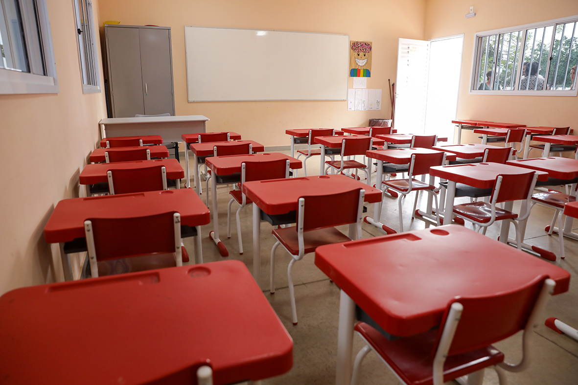 As salas de aula serão equipadas com mesas e cadeiras, quadro, televisões e armários para os professores