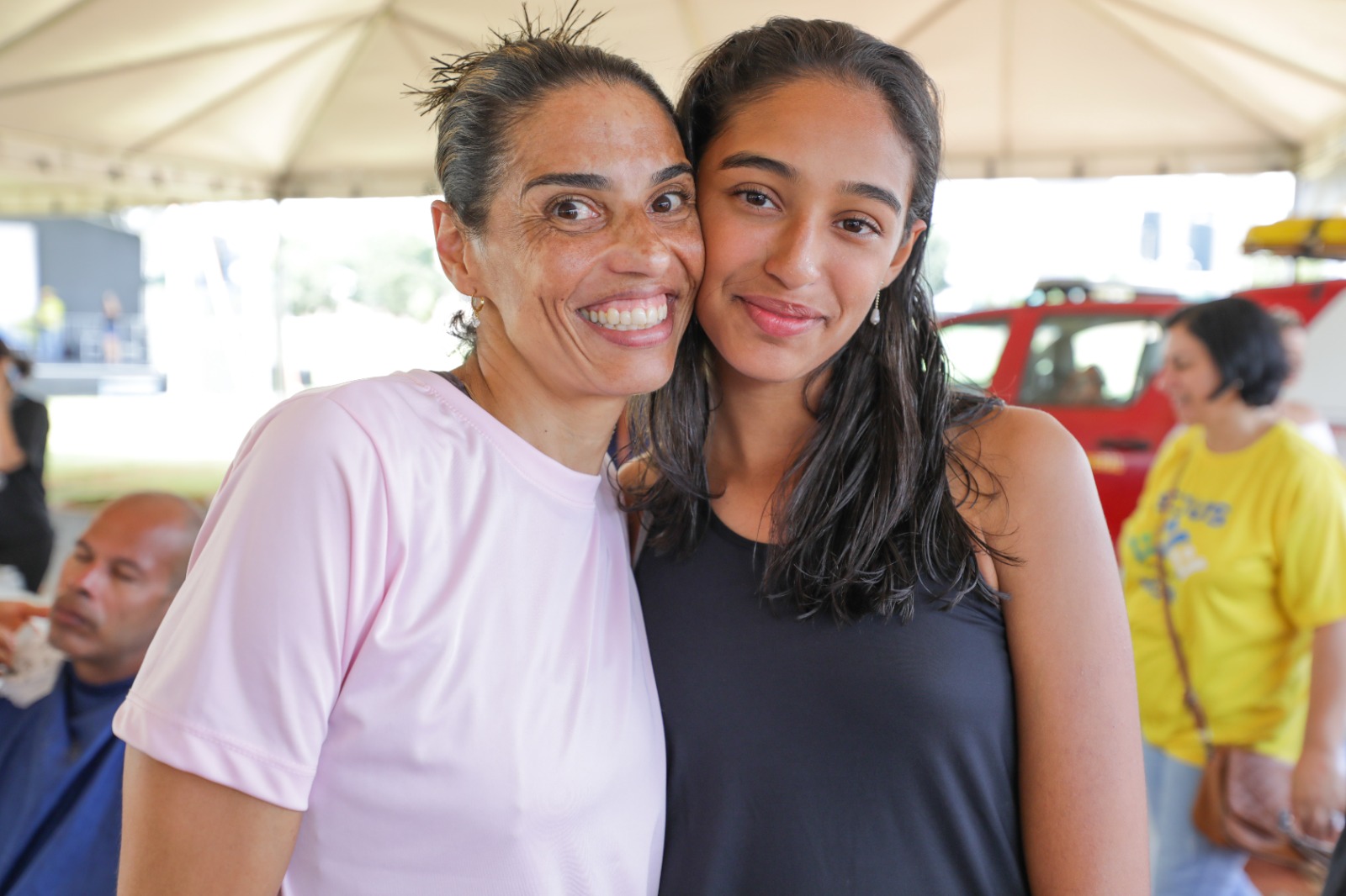A advogada Cintia Fernandes, 46 anos, e a estudante Yasmin Fernandes, 13, escolheram passar a manhã deste sábado no GDF Mais Perto do Cidadão para comemorar a vitória da menina na competição de atletismo no colégio. As duas aproveitaram para fazer as sobrancelhas e colocar a carteira de vacina em dia.