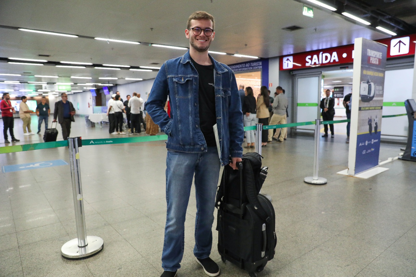 Luiz Gustavo Vilhena veio para Brasília e elogiou o nosso aeroporto: ““É muito bom ter um centro de atendimento ao turista porque nos sentimos acolhidos. A gente chega meio perdido, sem saber para onde vai ou o que fazer”