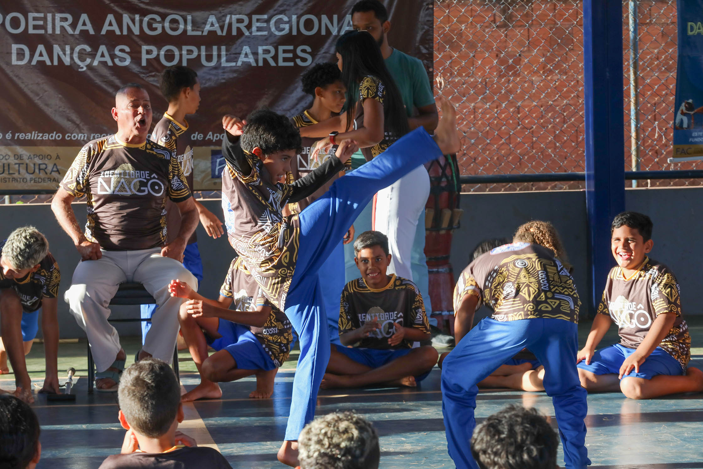 Patrimônio cultural imaterial da humanidade, a capoeira ganhou destaque na Escola Classe Aspalha, no Lago Norte. Durante quatro meses, o projeto Identidade Nagô ofereceu oficinas de capoeira, maculelê, puxada de rede e musicalidade para crianças a partir de 6 anos. A iniciativa é da União da Capoeira do Distrito Federal (UCDF), com recursos do Fundo de Apoio à Cultura (FAC), da Secretaria de Cultura e Economia Criativa (Secec-DF).