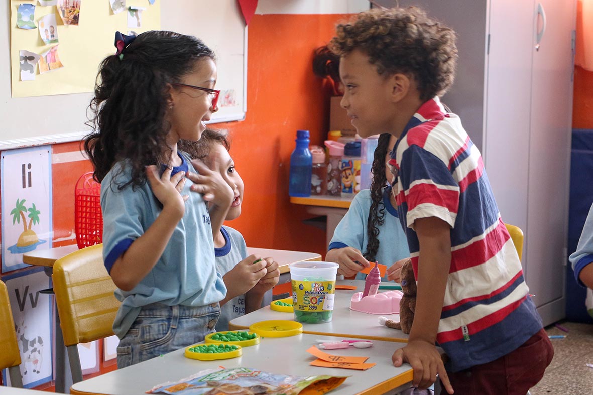 Em vez dos tradicionais A, B, C, D e E, amor, bondade, confiança, doação e empatia. Os nomes dados às cinco turmas de cada turno já dão pistas do tipo de trabalho desenvolvido no Centro de Educação Infantil (CEI) 10 de Taguatinga. “Os valores no mundo estão muito perdidos. Você escuta cada história, vê cada história. Então, uma educação desde o início faz falta, porque a gente sabe que vai levar para a vida. E aqui a escola ensina os valores. A gente achou a coisa mais linda a sala ser por nome, tudo bonitinho”, conta a empresária Áurea Rodrigues, mãe de Miguel, 4 anos.