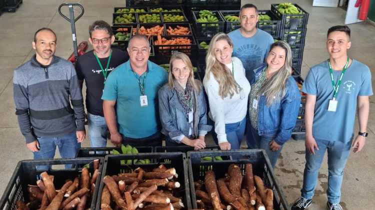 Equipe da Gerência de Comercialização da Emater-DF recebe alimentos produzidos por agricultores familiares | Foto: Divulgação/Emater-DF