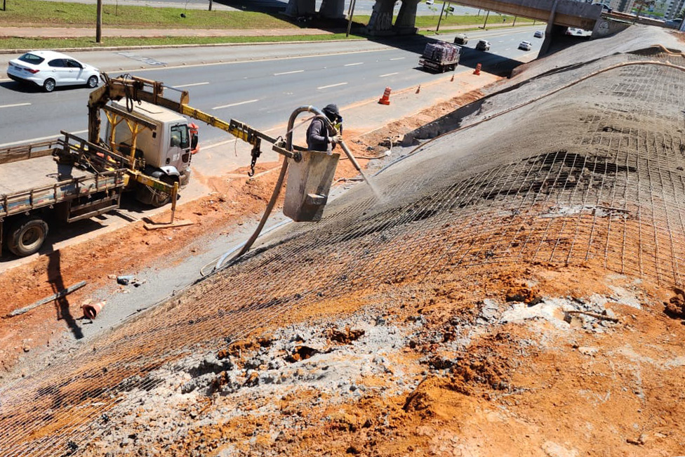 Os taludes são superfícies localizadas nas encostas às margens de rodovias e servem para evitar deslizamentos ou colapsos das paredes que revestem a lateral das pistas. A concretagem ajuda a dar mais estabilidade às estruturas, dirimindo os riscos do revestimento se desprender e invadir a pista.