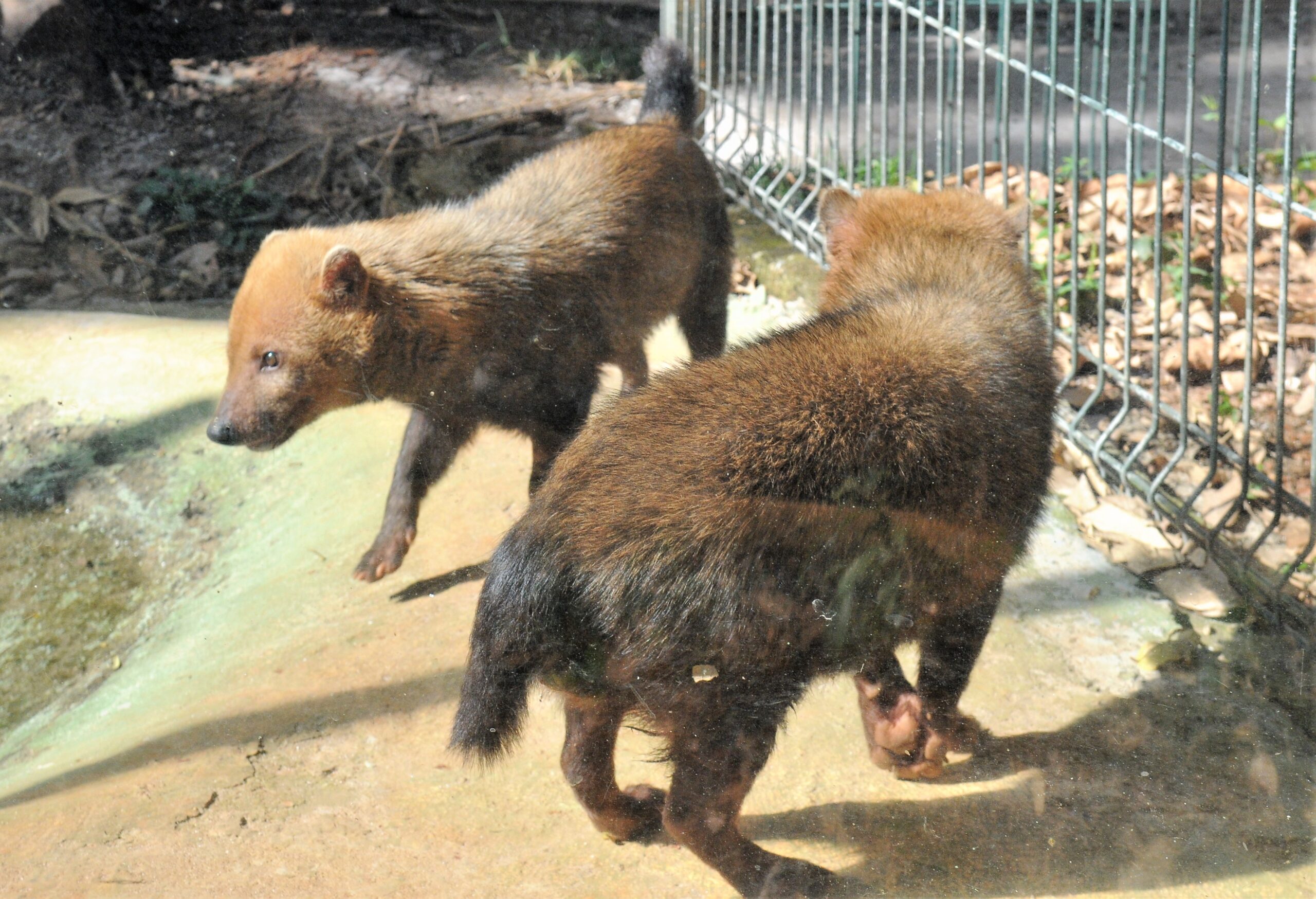 Agora, companheiros de recinto, os dois vivem uma rotina sincronizada e dinâmica, com alimentação três vezes ao dia e estímulos diários de comportamentos que teriam na natureza. “É o processo de enriquecimento ambiental, no qual a gente estimula tanto a parte psicológica, como a parte motora do animal para ele não cair no tédio”, explica Reis.