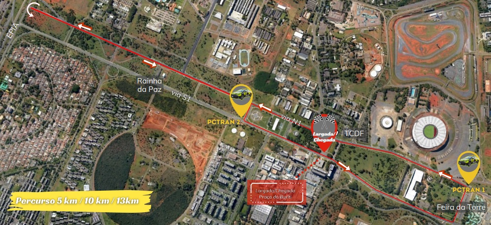 Neste domingo (23), devido ao evento Circuito das Estações Etapa Outono, o Departamento de Trânsito do Distrito Federal (Detran-DF) fará interdições nas vias S1 e N1, do Eixo Monumental. O evento contará com percursos de 5 km, 10 km e 13 km, com a largada e a chegada em frente à Praça do Buriti. Os corredores seguirão pela via S1 até na altura da Feira da Torre, onde vão acessar a via N1 e seguir no sentido da Estrada Parque Indústria e Abastecimento (Epia).