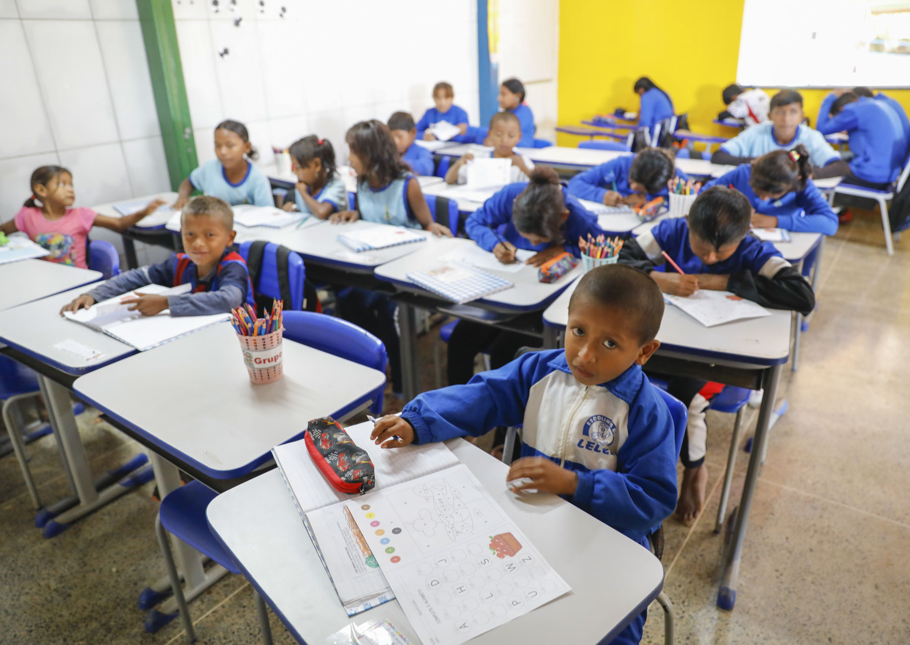 Crianças de 4 a 17 anos da comunidade Warao que nunca haviam frequentado salas de aula agora formam uma turma especial de 67 alunos na Escola Classe Café Sem Troco | Foto: Lúcio Bernardo Jr./Agência Brasília