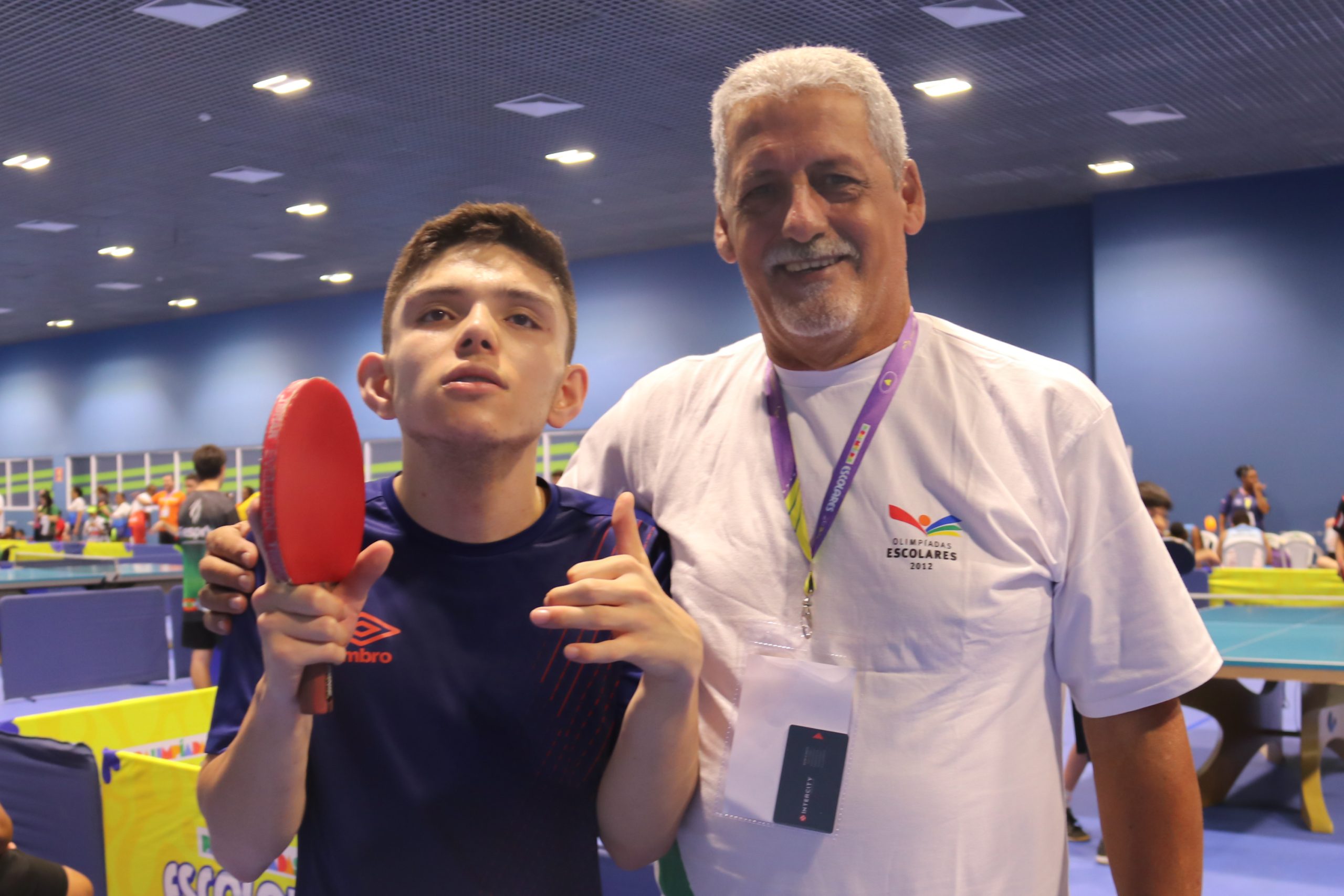 Vinícius Honda, do CEM Paulo Freire, ao lado do técnico Adalberto Prieto: “Torçam por mim, conto com a torcida de todos vocês”