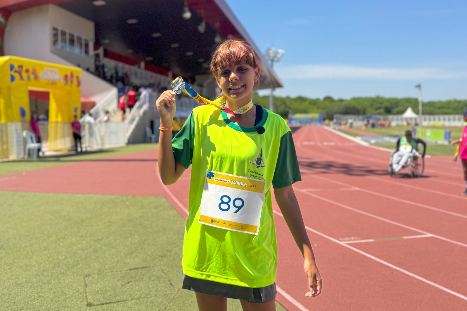 O Distrito Federal começou a sua participação nas Paralimpíadas Escolares com um desempenho brilhante. No primeiro dia de competições, Juliana Gomes Ferreira, 16, aluna do Centro Educacional (CED) São Bartolomeu, de São Sebastião, garantiu a primeira medalha para a delegação do DF. Ela conquistou a prata na prova de atletismo dos 1.500 metros, principal corrida de meio-fundo em pistas de atletismo.